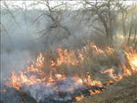 Low intensity flames in grasses during Far View prescribed fire, November 2001