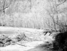 B&W negative of flood damage to Virgin River bank. ; ZION Museum and Archives Image ZION 8611 ; ZION 15933