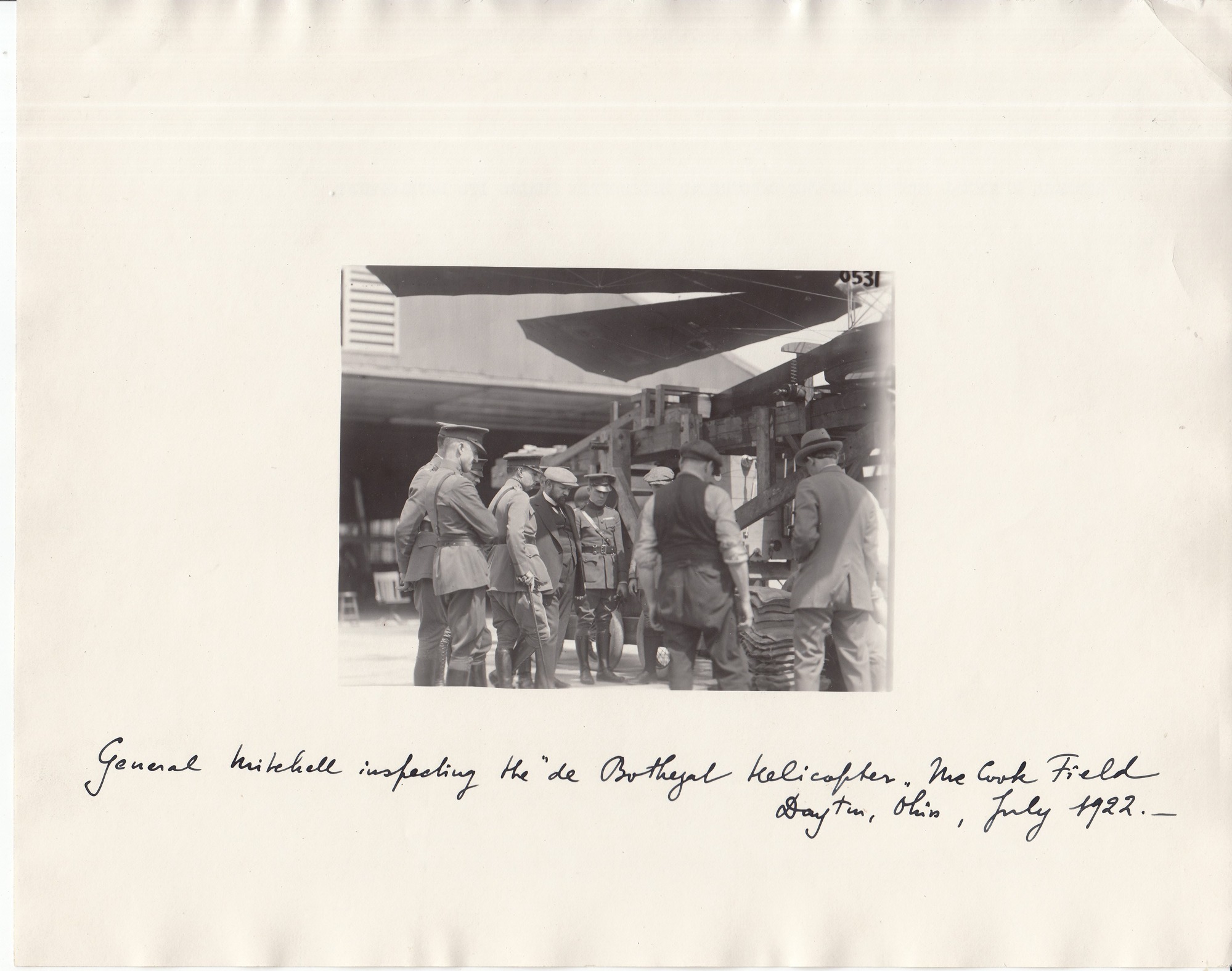 General Billy Mitchell inspecting the helicopter designed by George de Bothezat.