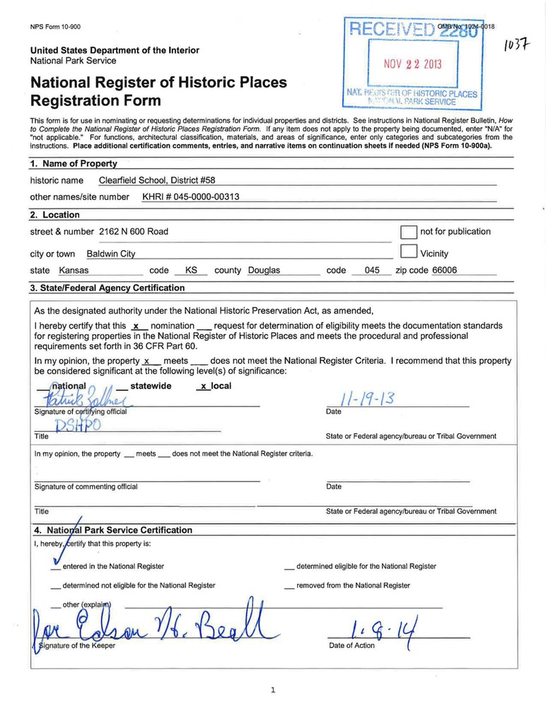 Baldwin City ; 2162 N. 600 Rd.