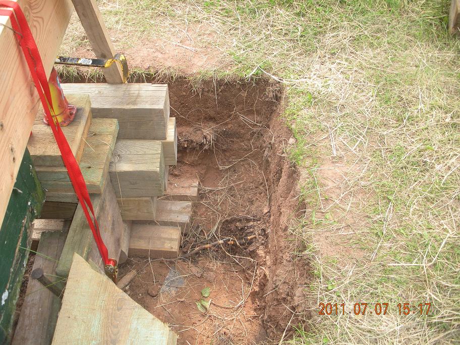 The boathouse was raised up and all deteriorated foundation material was replaced or like new Material was spliced into the old. Floor joist were also replaced or spliced. The grounds the north of the boathouse was contoured to prevent runoff from compromising the building. The doors and windows were repaired. The exterior was painted.