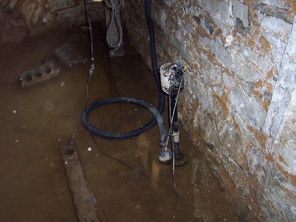 cellar of Joseph Poffenberger House before mothballing project, standing water over 8" deep