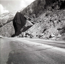 BW photo of rock slide near Echo Rock - 2.5" x 2.5". ; ZION Museum and Archives Image 107_06_06027 ; ZION 15933