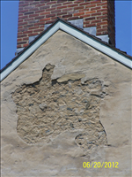 2012 - Views of the deteriorating stucco on the west elevation of the historic John Wilson Building #45 in Lower Town, Harpers Ferry, WV.