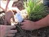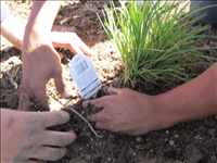 YCC members planting native species to replace sod in newly design landscape bed.