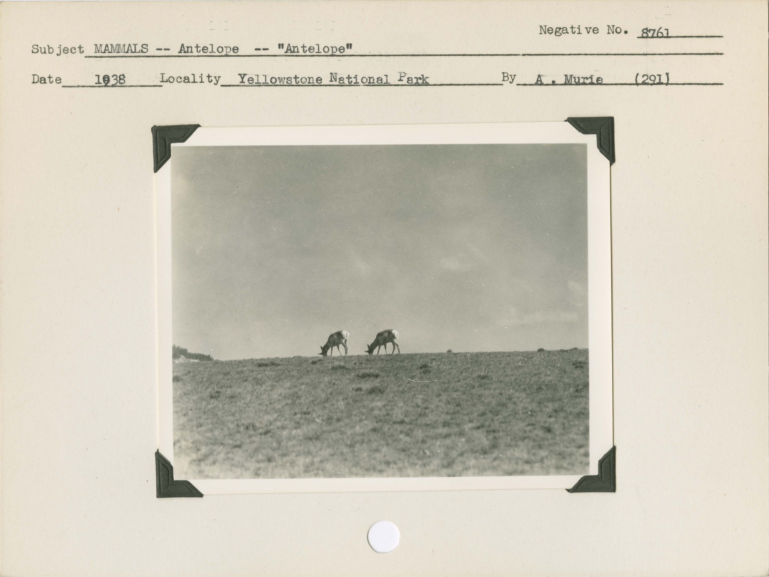 Mammals, Antelope [Pronghorn] -- "Antelope [Pronghorn]".. Locality: Horseshoe, Yellowstone National Park. Negative #: 8761. [The more specific date comes from the reverse of the envelope for this negative number]