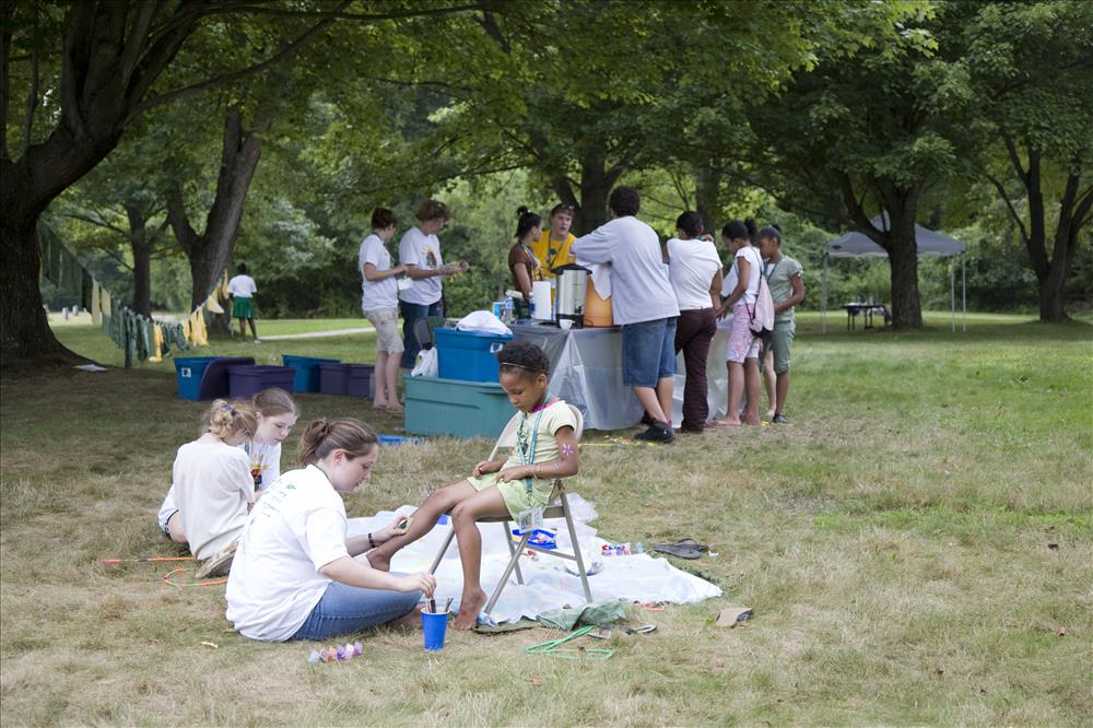 Youth have their faces painted at the Get Up, Get Out & Go! finale in August 2007. || Cuyahoga Valley National Park (CVNP) and Cuyahoga Valley National Park Association present Get Up, Get Out & Go!, an urban outreach program introducing kids ages 11 to 14 and their families to recreational opportunities along the Ohio & Erie Canal Towpath Trail in the greater Akron (Ohio) area. This free summer series targets residents in the urban neighborhoods surrounding the Towpath Trail in Akron but is open to all participants.
