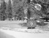 New Construction of the Yosemite Park and Curry Co. Store and Restaurant being erected in Yosemite Village under "MISSION 66". (2 Negatives). Yosemite Valley. For official negative file of Yosemite.