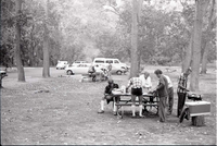 BW photos of visitors using Grotto Picnic Area. ; ZION Museum and Archives Image 501_01_01001 ; ZION 15933