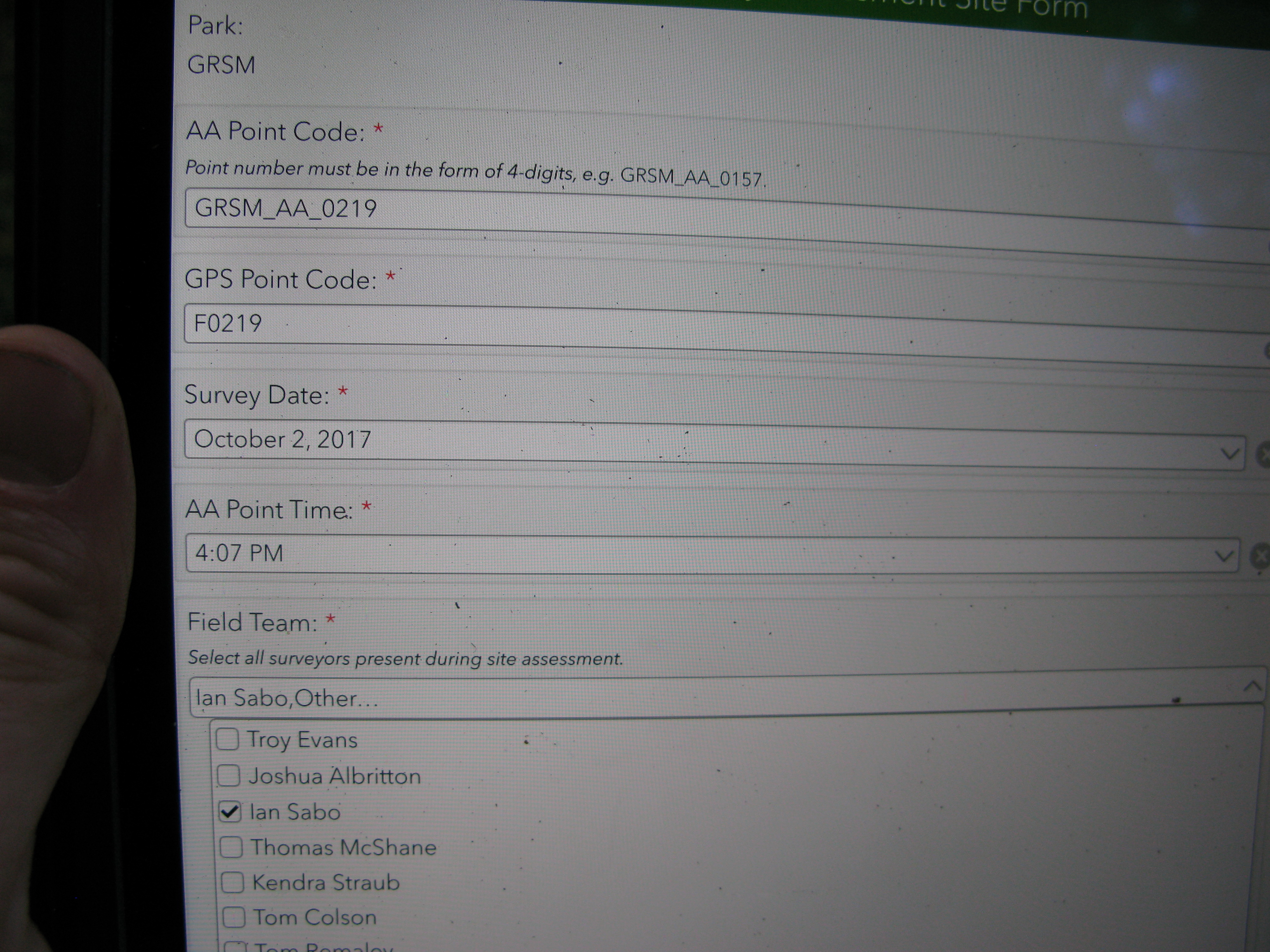 Plot Code: GRSM_AA_0219_1 from the Great Smoky Mountains National Park (GRSM) Accuracy Assessment.