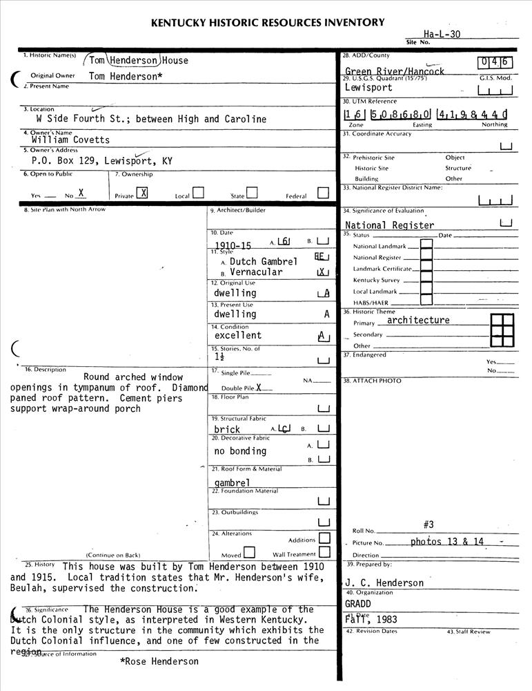 Henderson, Tom, House