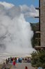 Visitors viewing Old Faithful Geyser as seen from the Old Faithful Inn;