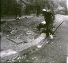 Man inspecting roadside progress during road work along the scenic canyon drive near the Grotto. ; ZION Museum and Archives Image 002.03.05-33of37 ; ZION 15933
