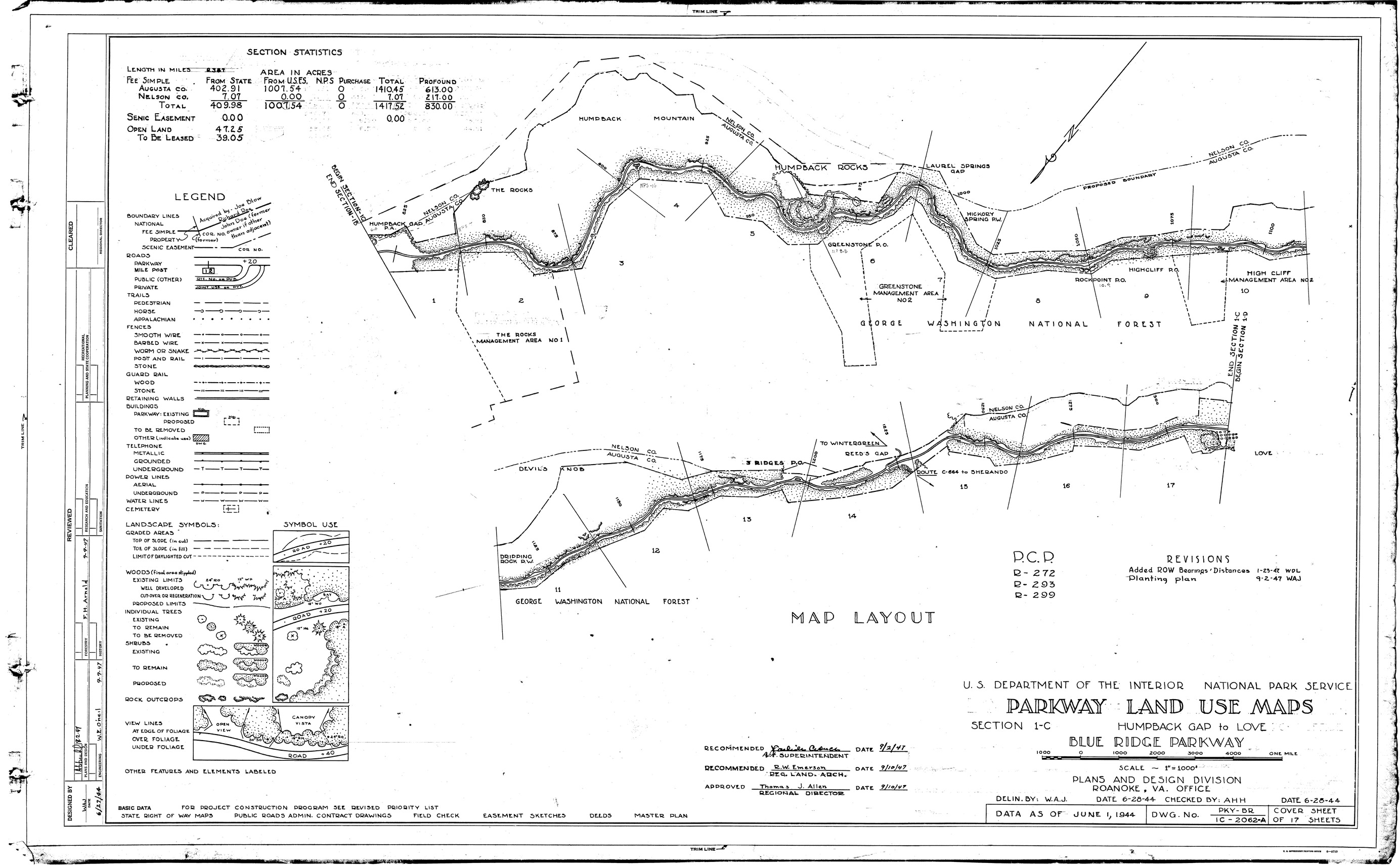PLUMS Section 1-C shows land use from Humpback Rocks (MP6.1) to Love (MP15.4). This document contains 18 pages.