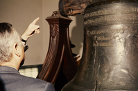 Secretary of the Interior Hickel looking at the Liberty Bell in Independence National Historical Park.