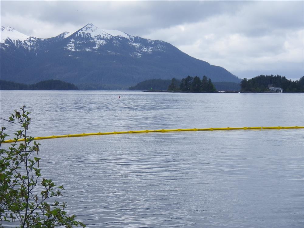 These pictures were taken by the US Coast Guard Oil Response team during spill response to the sinking of the Fishing Vessel (F/V) Igloo in mid-May 2012. The boom was intended to prevent surface oils from reaching the Indian River estuary and impacting park resources. Deployment was only partially effective, due to the boom being too short to complete oil exclusion.