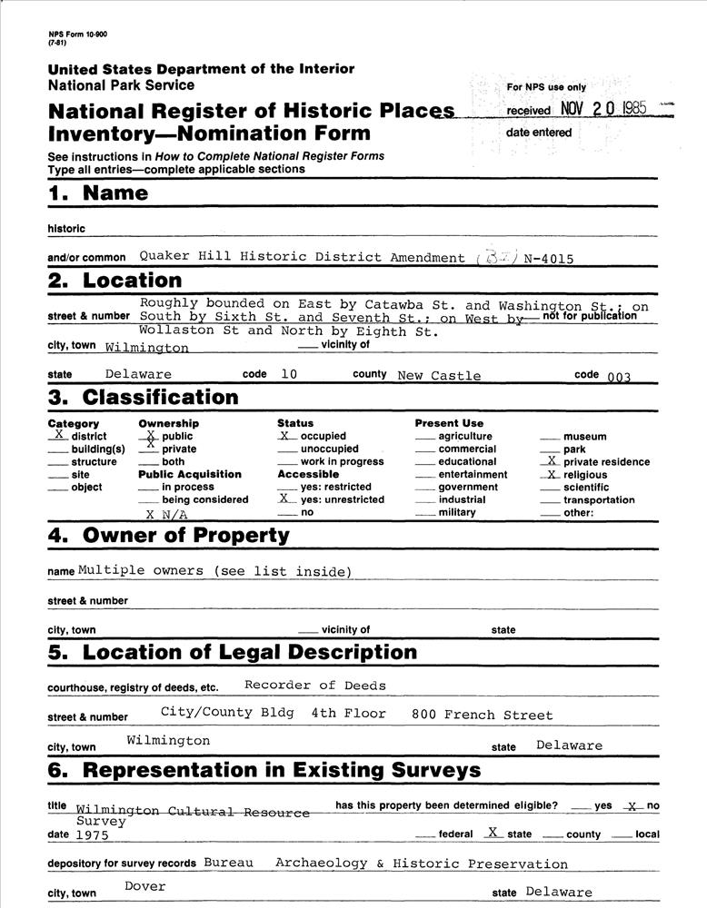 Wilmington ; Roughly bounded by Eighth, Catawba and Washington, Sixth and Seventh, and Wollaston Sts.