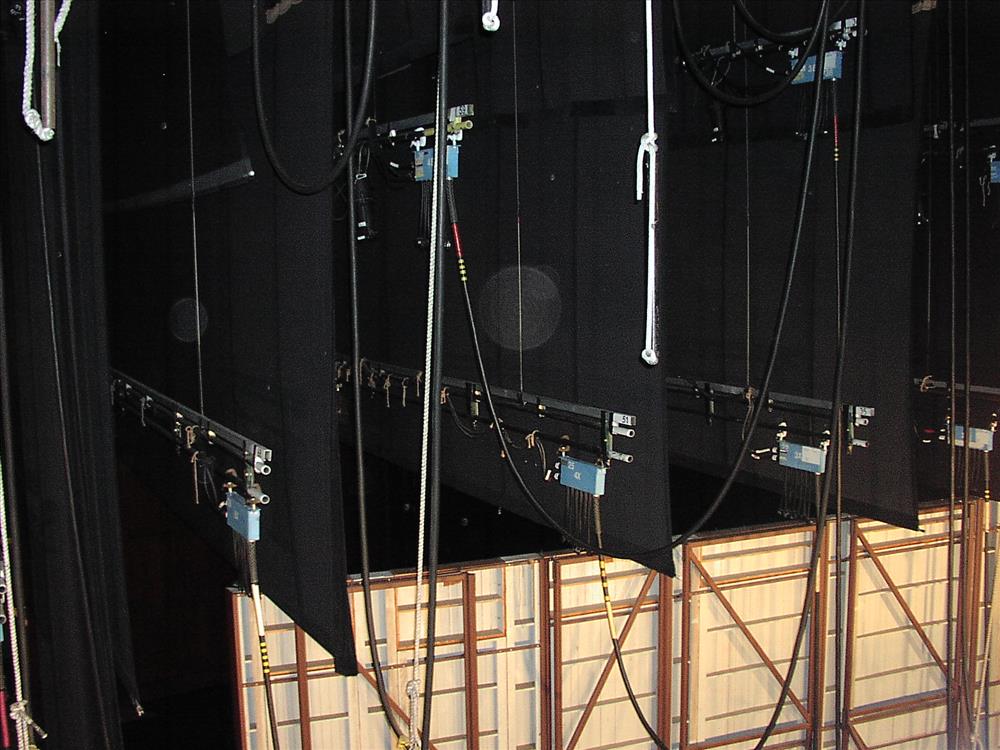 Stage draperies (fabric borders, legs, and curtains) at the WOTR Filene Center.