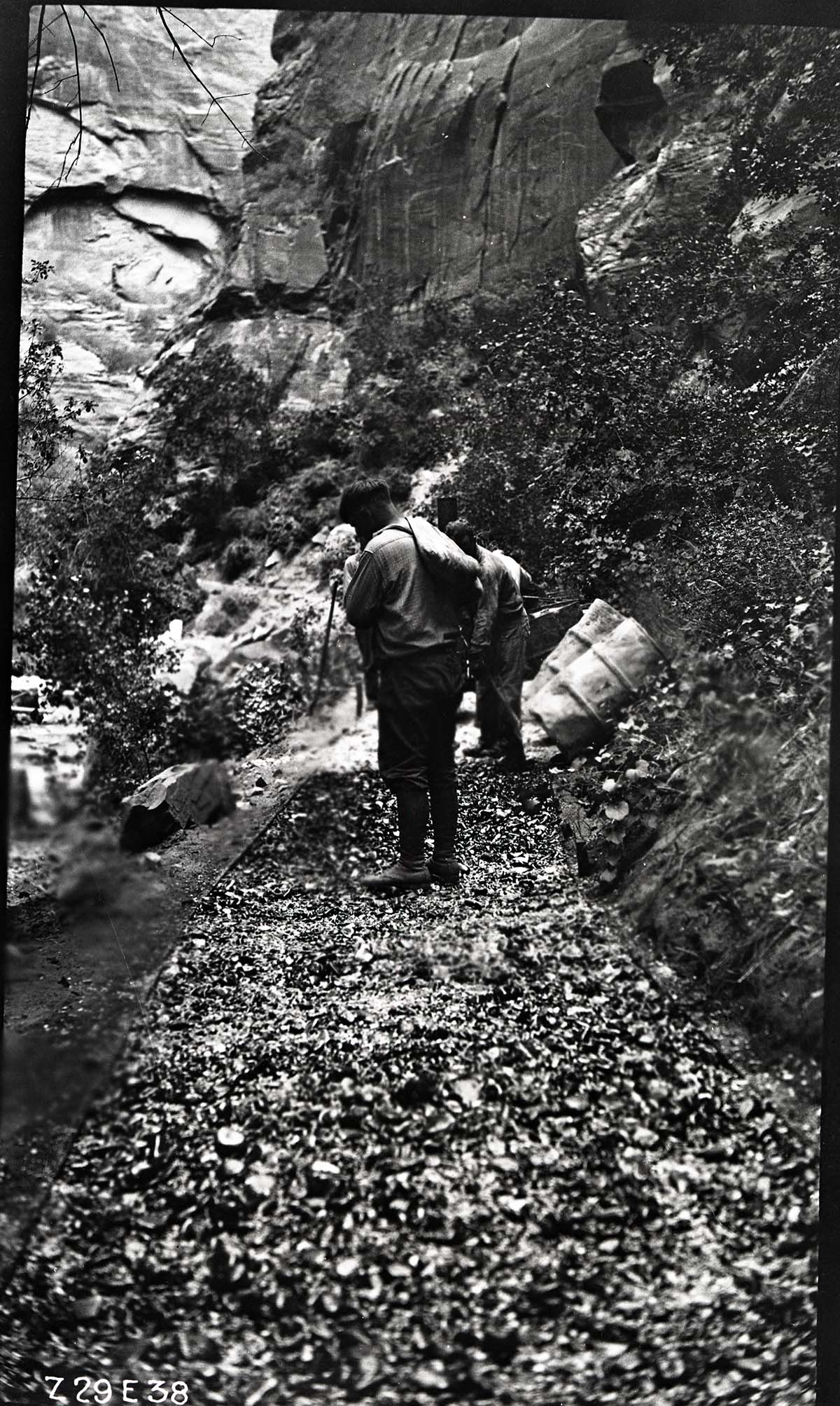 Construction of the Narrows Trail. ; ZION Museum and Archives Image 008_03_001 ; ZION 7207