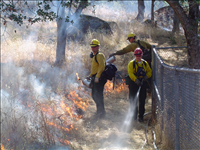 The Ash Mountain Prescribed Fire Project consists of 12 separate grass units which are ignited at different times given appropriate prescription and resource constraints. The first of these units was ignited on May 5, 2004 and finished on June 11, 2004. The objectives of this endeavor are hazardous fuel reduction around development areas and native grass restoration. These images show ignition methods, backing fires, fire crew holding and patrolling the burn, and blazing brush around headquarters.
