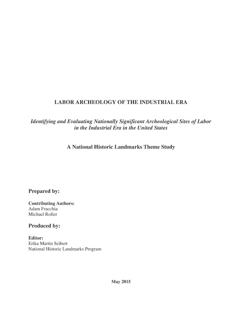 Labor Archeology of the Industrial Era: Identifying and Evaluating Nationally Significant Archeological Sites of Labor in the Industrial Era in the United States