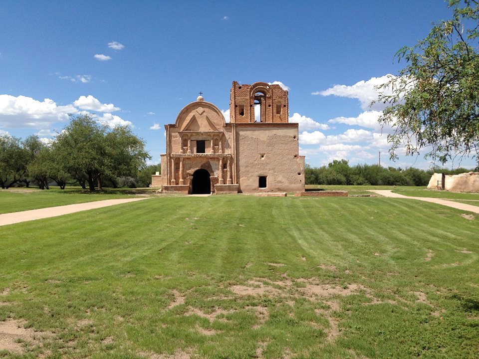 Native grasses surround the Tumacácori mission church, Tumacácori National Historical Park, 2015.