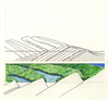A two-part geologic island formation diagram shows the sedimentary rock layers and lava layers making up Isle Royale National Park. The illustration below shows the sedimentary rock layer as the source of island ridges.