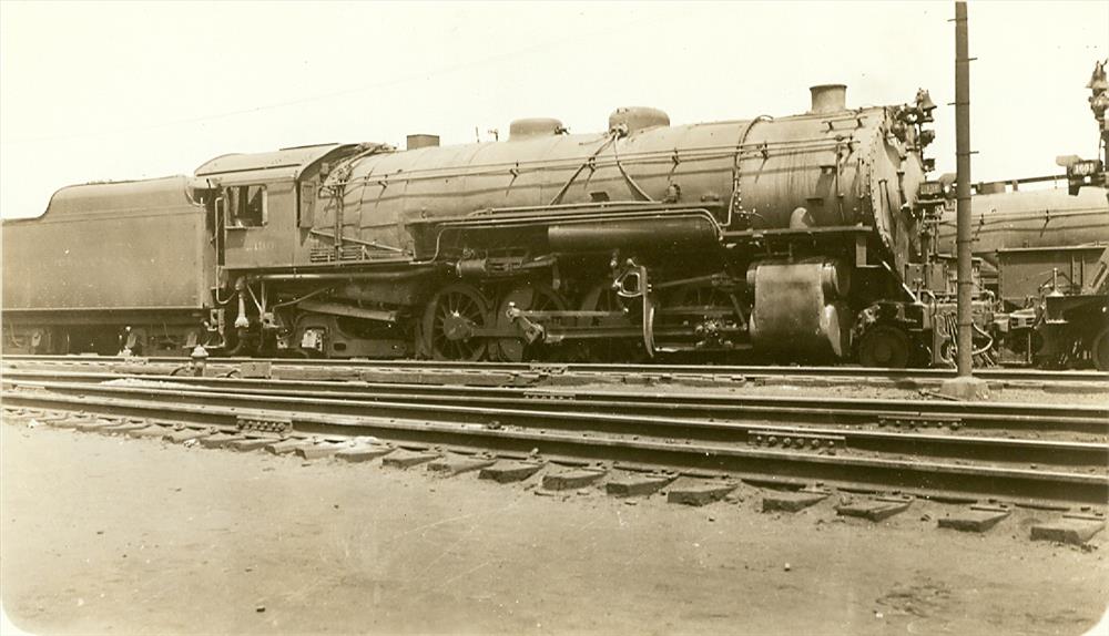 Caption: Lackawanna (DL&W R.R.) at Scranton 1938 2130 2-8-2, heavey frieght service