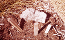 Three stakes at unknown revegetation site on Cascade Pass, 10/9/1974