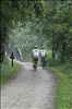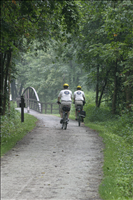At Cuyahoga Valley National Park volunteers perform a wide variety of duties during every season of the year. Currently over 2,021 volunteers donate over 70,195 hours to the park. || Trailblazer volunteers assist the park by patrolling the Towpath Trail in pairs on bicycle. These volunteers are riding just north of Hunt Farm.