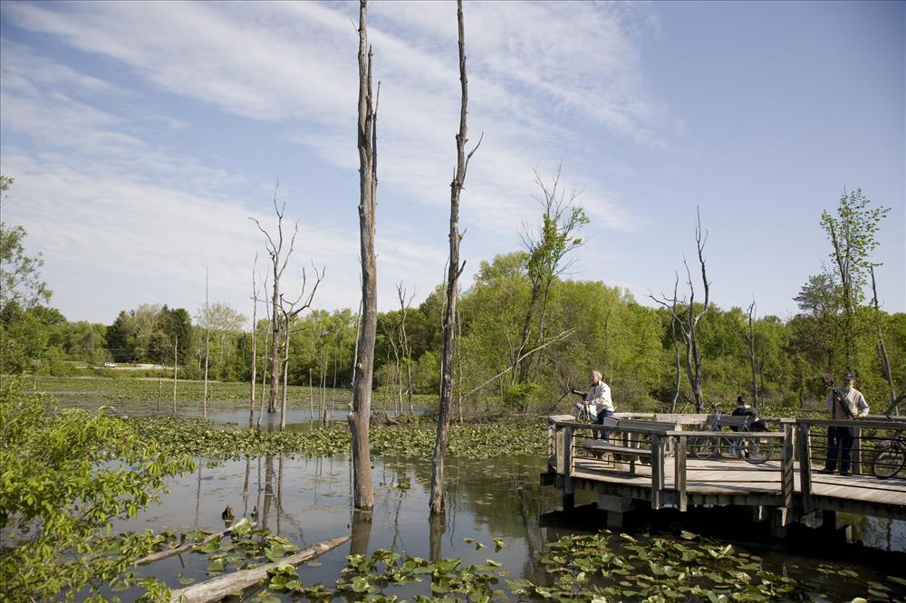 A visitor takes nature photographs at the Beaver Marsh, a site along the Towpath Trail. || Nature photography is a popular activity in Cuyahoga Valley National Park. Cuyahoga Valley Photographic Society promotes CVNP through the photographic arts by providing educational opportunities such as workshops, presentations, photo walks, and an annual photo contest. For more information contact info@cvps.org.