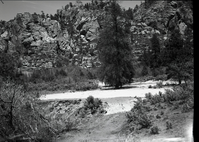 Inspection trip into Kolob area and the eroded road built by Evan Lee into Hop Valley. ; ZION Museum and Archives Image 103_02_030 ; ZION 9471