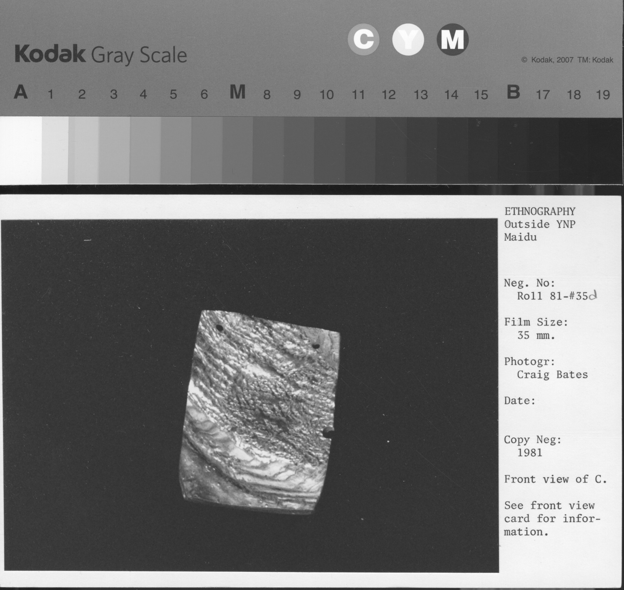 Copy Neg: 1981. Back view of C. See card with front view for information.