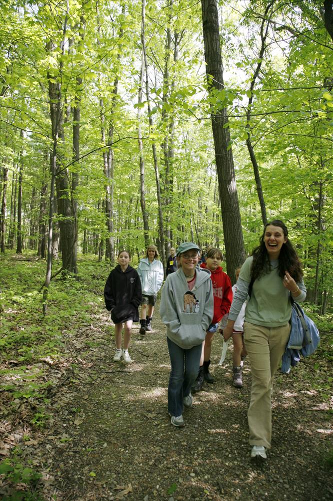 Girl scouts hike along trails at Cuyahoga Valley Environmental Education Center. || For many years, girl scout troops have participated in an overnight retreat at Cuyahoga Valley Environmental Education Center. Activities vary annually and help participants earn select badges. These photos were taken in May 2007.