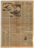 A page of a newspaper with large illustration of airplanes at the top.