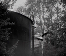 Water pouring on ground from pipe out of cement water tank. ; ZION Museum and Archives Image 005.09.04-4of7 ; ZION 15933