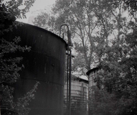 Chain and lock on hatch of water tank roof, prior to reroofing project. ; ZION Museum and Archives Image 005.09.04-5of7 ; ZION 15933
