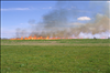 Depicts a prescribed grasslands burn at Fort Larned National Historic Site, May 2003.