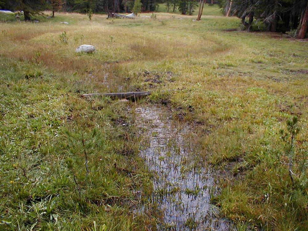 Meadow impacts near camp used by Cottonwood Pack Station at Lower Rock Creek Xing, Sequoia and Kings Canyon National Park