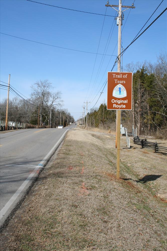 Images show three road signs placed along the Old Nashville Highway that alert the ppublic that the road was once part of the Trail of Tears.