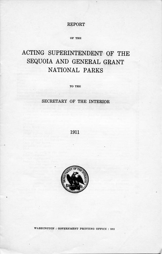 Report of the Acting Superintendent of the Sequoia and General Grant National Parks to the Secretary of the Interior. 1911.