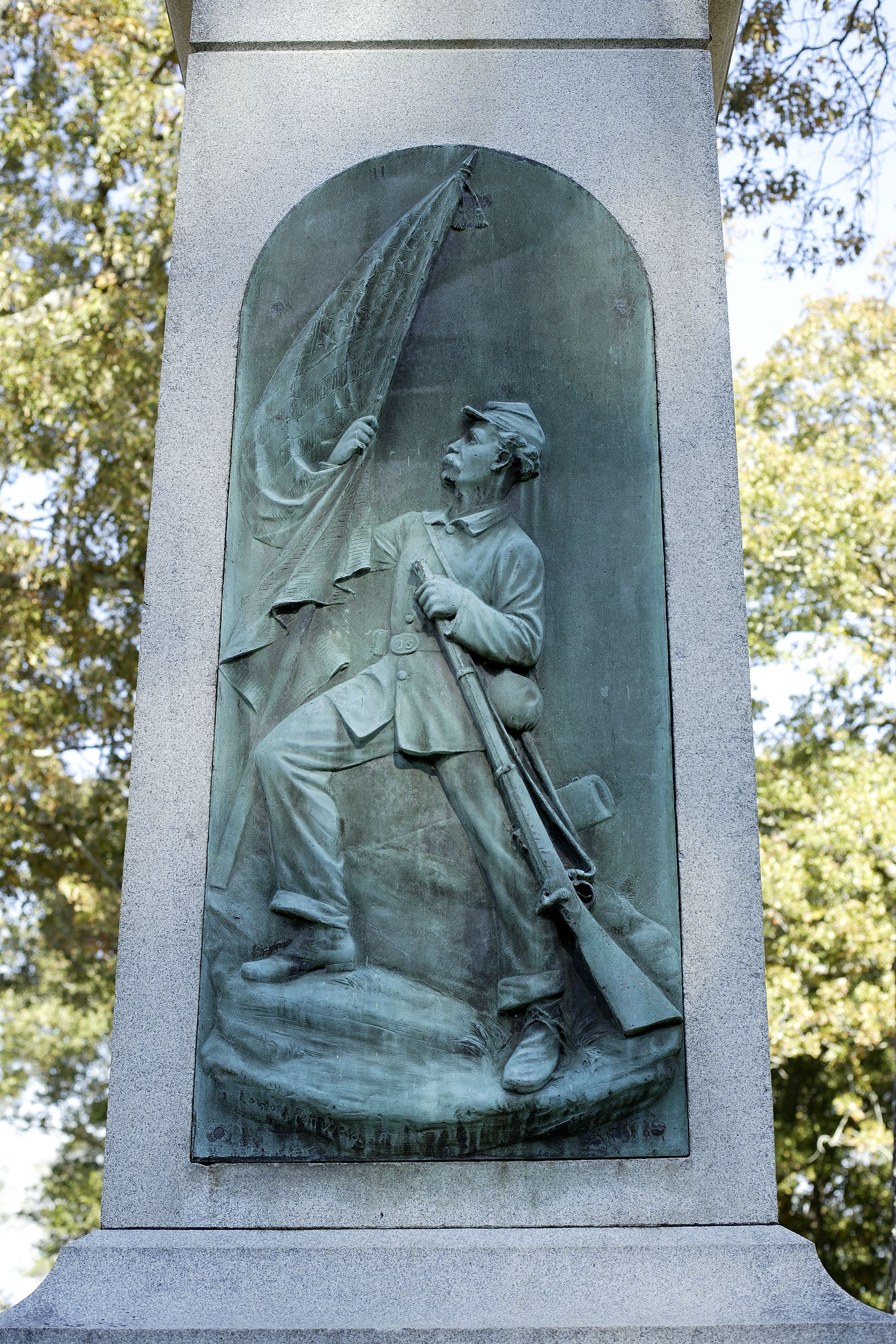Monument contributes to nat'l significance of park under NR Criterion A because it represents the national movement among veterans & related groups to commemorate Civil War battlefields. || 7' square at base & 17'2" high, monument has 2-step rock-faced base, lettered pedestal, and bronze relief of a color bearer on shaft. Capstone incorporates bronze state seal and supports acorn finial. Located on Snodgrass Hill.