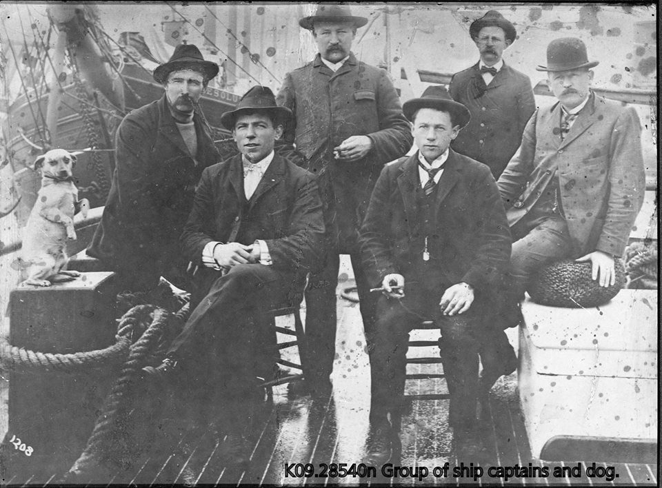 Group of ship captains and ship dog, San Francisco Maritime National Historical Park, 2015.