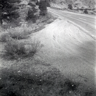 Wooden post in road crack during east side road repair and turn out construction. ; ZION Museum and Archives Image 002.13.01-51of53 ; ZION 15933