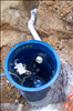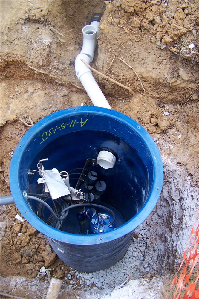 Contractor installing replacement sewer pumps at Cabin Camp 5 building 86, Visitor Center Comfort Station, and Pine Grove Comfort Station at Prince William Forest Park in November 2013.