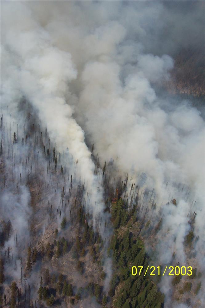 The Trapper Fire was one of four major fires in Glacier National Park in 2003.
