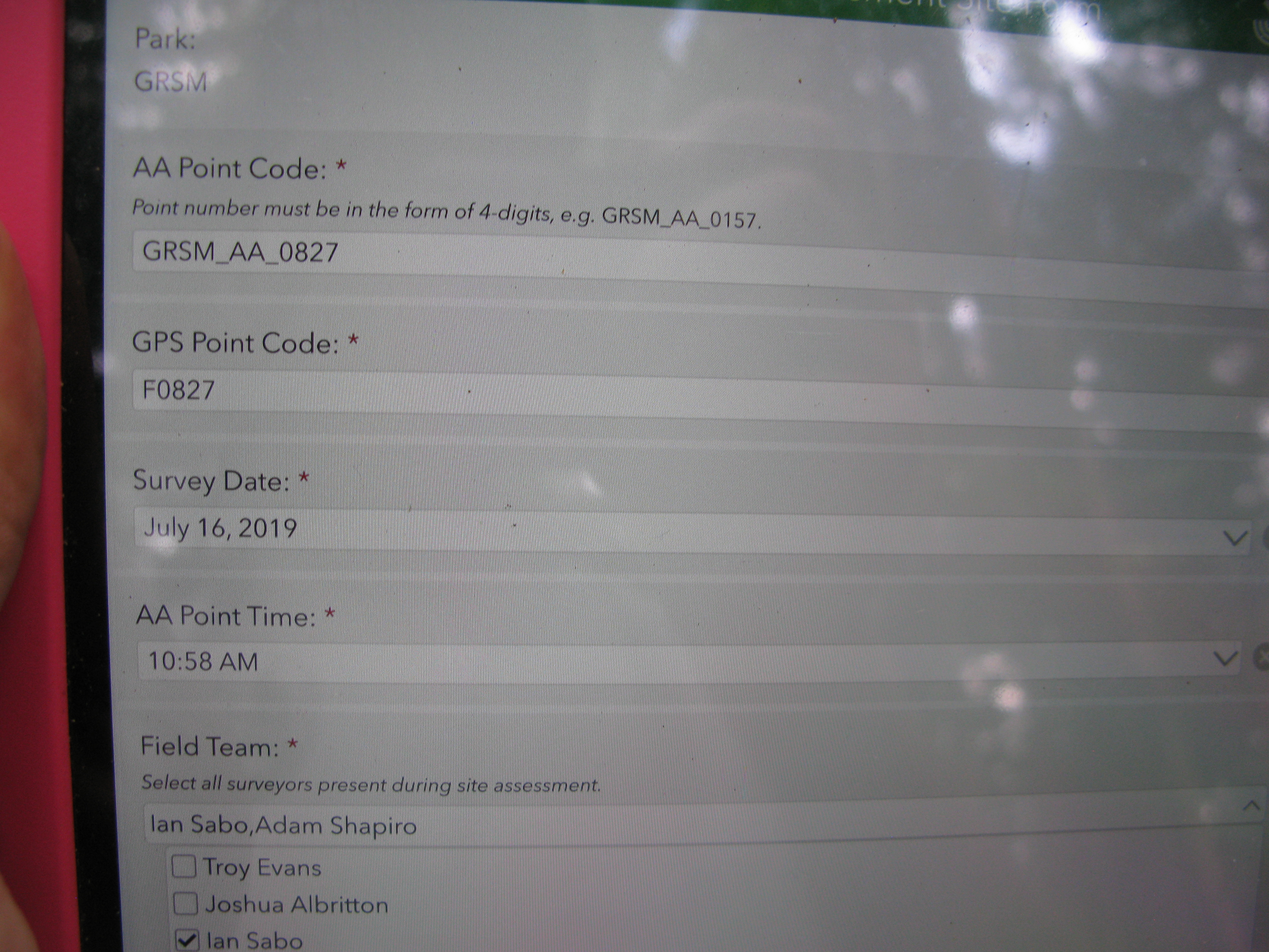 Plot Code: GRSM_AA_0827_1 from the Great Smoky Mountains National Park (GRSM) Accuracy Assessment.