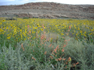 A large field of yellow and red flowers found by Russ Bodnar in front of a tall rock formation at CHCU in September of 2006.
