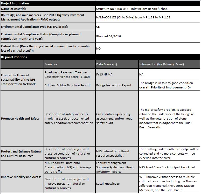 NAMA HPMA Project Tables for Prioritization