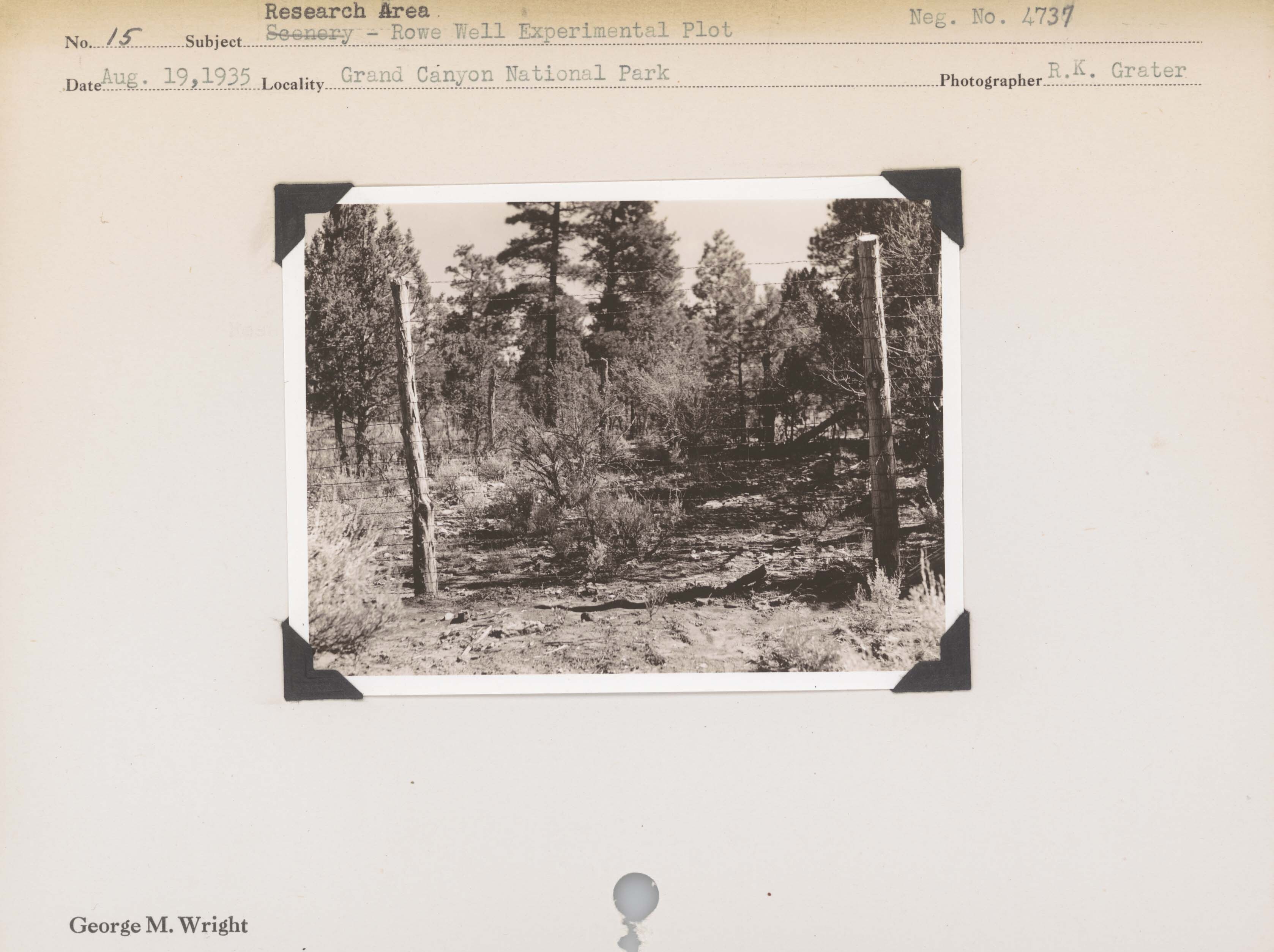 Research Area--Rowe Well experimental plot. Locality: Grand Canyon National Park. Negative #: 4737